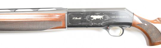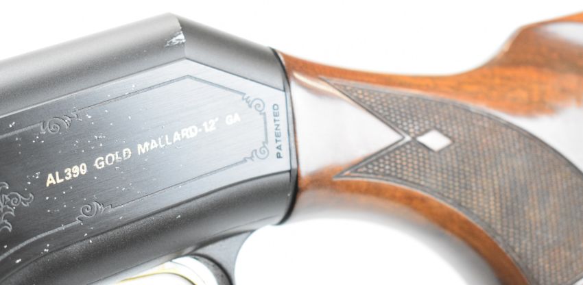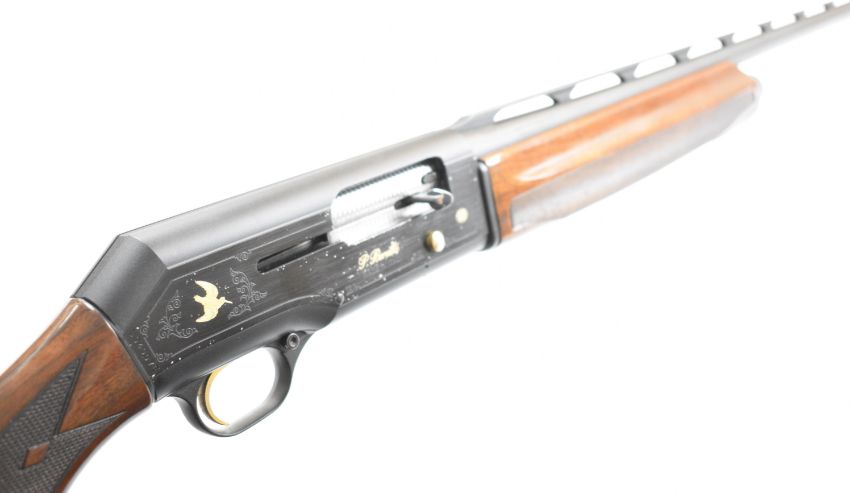 Beretta A390 Gold Mallard 12 bore three-shot semi-automatic shotgun with named and engraved locks featuring gold birds and dogs, chequered semi-pistol grip and forend, vented rib and 30 inch multi-choke barrel, overall length 129cm, length of pull 37.5cm, serial number U04007E. PLEASE NOTE THAT A VALID RELEVANT SHOTGUN CERTIFICATE IS REQUIRED TO VIEW OR PURCHASE THIS LOT AND FOR ALL SHOTGUNS OR RIFLES PLEASE ENSURE YOU HAVE THE RELEVANT CERTIFICATE BEFORE BIDDING.