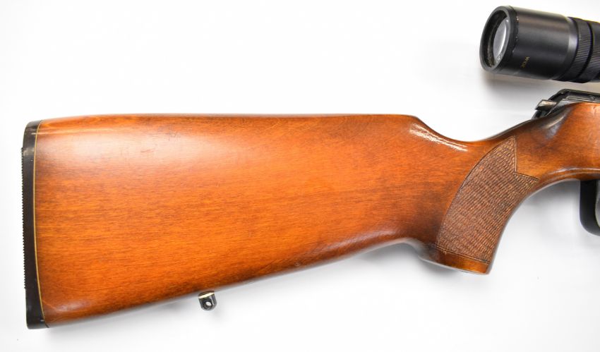Russian Tula T03-78-01 .22 bolt-action rifle with chequered semi-pistol grip and forend, sling mounts, multi-shot magazine, Nikko Stirling Silver Crown 3-9x40 scope, sound moderator and 25 inch barrel, overall length 108cm, serial number 9603944PLEASE NOTE THAT A VALID RELEVANT FIRARMS CERTIFICATE IS REQUIRED TO VIEW OR PURCHASE THIS LOT AND FOR ALL SHOTGUNS OR RIFLES PLEASE ENSURE YOU HAVE THE RELEVANT CERTIFICATE BEFORE BIDDING.