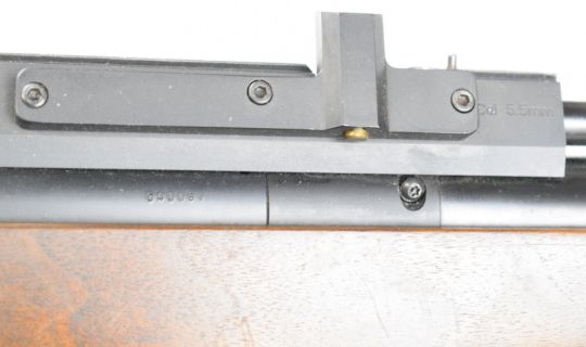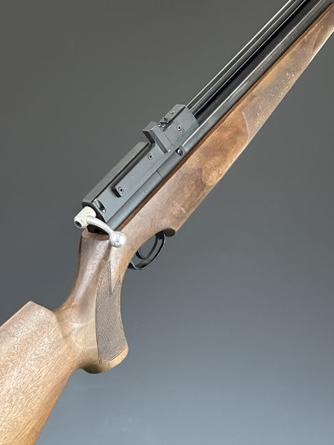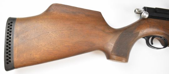 Air Arms S410 Classic .22 PCP air rifle with chequered semi-pistol grip and forend, raised cheek piece and sound moderator, serial number 040087.