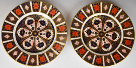 Pair of Royal Crown Derby Imari cabinet plates decorated in 1128 pattern, diameter 27cm