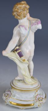 19thC Meissen figure of a cherub with quiver, probably Cupid, H14cm