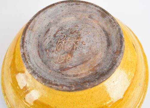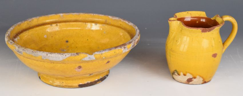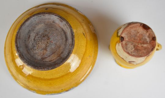 Ewenny Pottery pedestal bowl and small jug (H11.5cm), the bowl incised to the base 'Ewemny Pottery 1909, height 9 x diameter 24cm Provenance: Consigned for auction by granddaughter of Edwin Jenkins