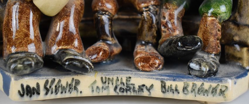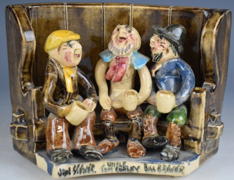 Will Young pottery figural group Uncle Tom Cobley, Jan Stewer and Bill Brewer, H11.5cm