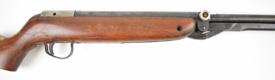Webley Mark 3 .22 under-lever air rifle with plaque inset to the stock and semi-pistol grip, serial number A4201. PLEASE NOTE: IF YOU REQUIRE POSTAGE, THIS LOT CAN ONLY BE SENT TO AN RFD