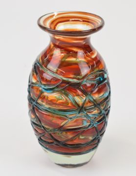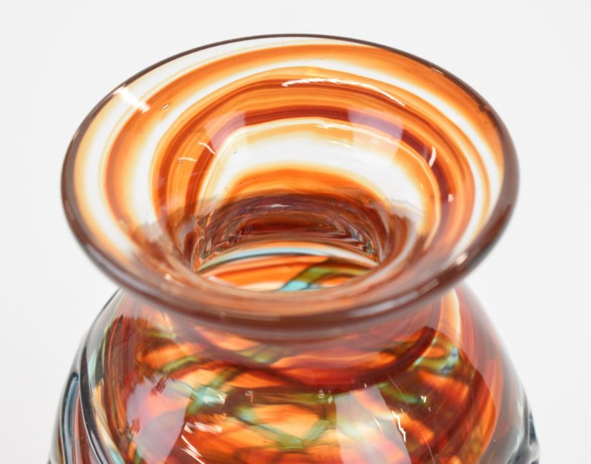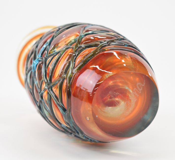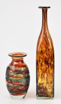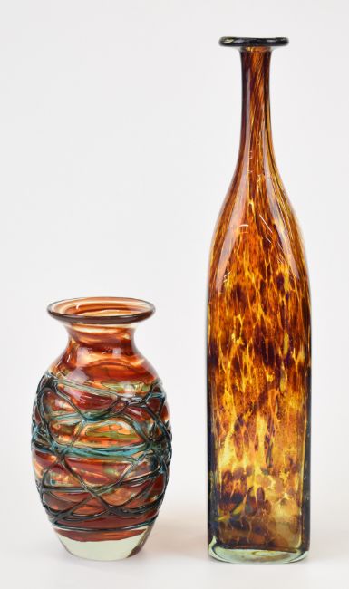 Two Mdina glass vases one with trailed decoration and the other a bottle vase, largest 37cm tall.
