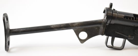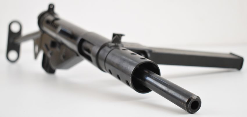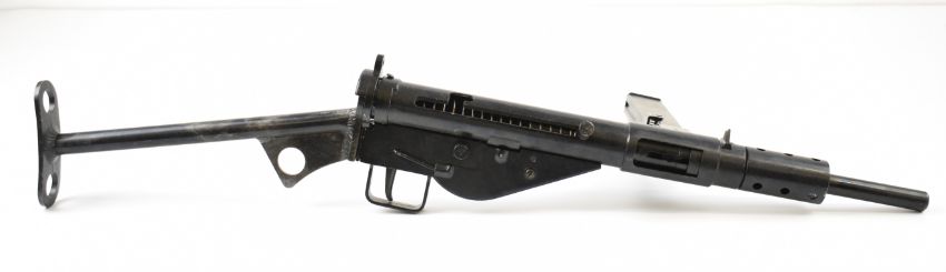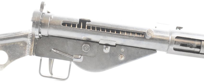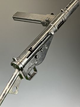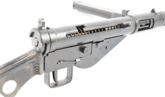 Denix replica Sten Mk II 9mm sub machine gun with top plate stamped 'Sten Mk II', extended magazine and eight inch barrel, overall length 76cm.