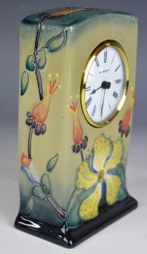 Moorcroft mantel clock decorated in the Hypericum pattern, H15.5cm
