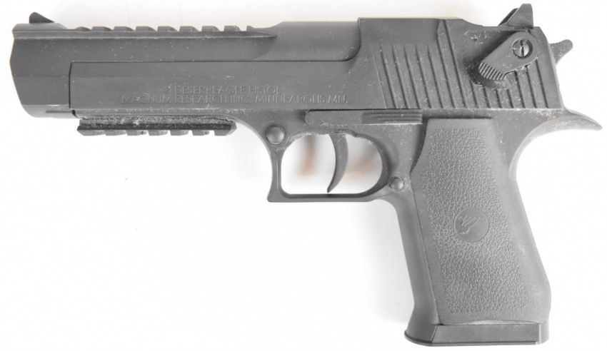 Umarex Magnum Research Desert Eagle .177 COair pistol with monogrammed and textured grips, 8-shot magazine and fixed sights, serial number U60744931, in original box with accessories and instructions. PLEASE NOTE: IF YOU REQUIRE POSTAGE, THIS LOT CAN ONLY BE SENT TO AN RFD