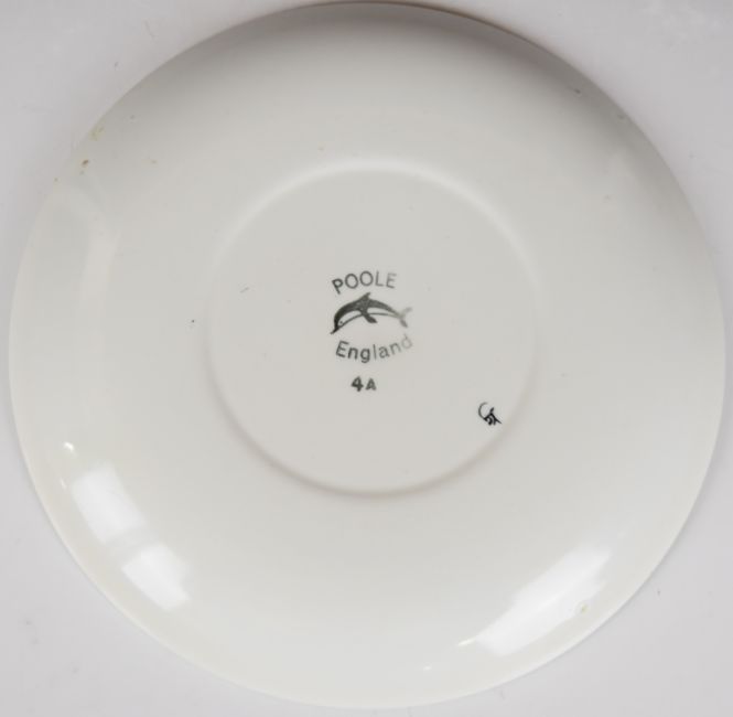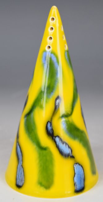 Poole Pottery mid century modern charger, Anita Harris sifter and a Lorna Bailey cache pot, tallest 12cm