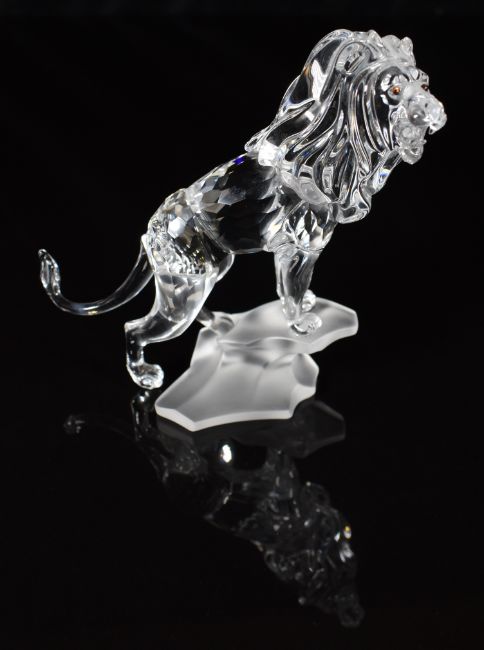 Three pieces of Swarovski Crystal, Bald Eagle 248003, Lion Standing on Rock 269377 and Mermaid 827603, all in original boxes.
