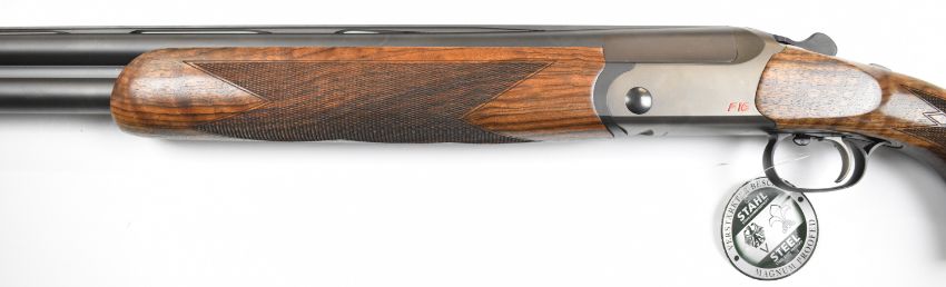 Blaser F16 12 bore over under ejector shotgun with named locks and underside, chequered semi-pistol grip and forend, vented top rib, single trigger and 32 inch multi-choke barrels, overall length 125cm, length of pull 37.5cm, serial number FGR001488, in original fitted case with additional choke, choke key, dust covers etc. PLEASE NOTE THAT A VALID RELEVANT SHOTGUN CERTIFICATE IS REQUIRED TO VIEW OR PURCHASE THIS LOT AND FOR ALL SHOTGUNS OR RIFLES PLEASE ENSURE YOU HAVE THE RELEVANT CERTIFICATE BEFORE BIDDING.