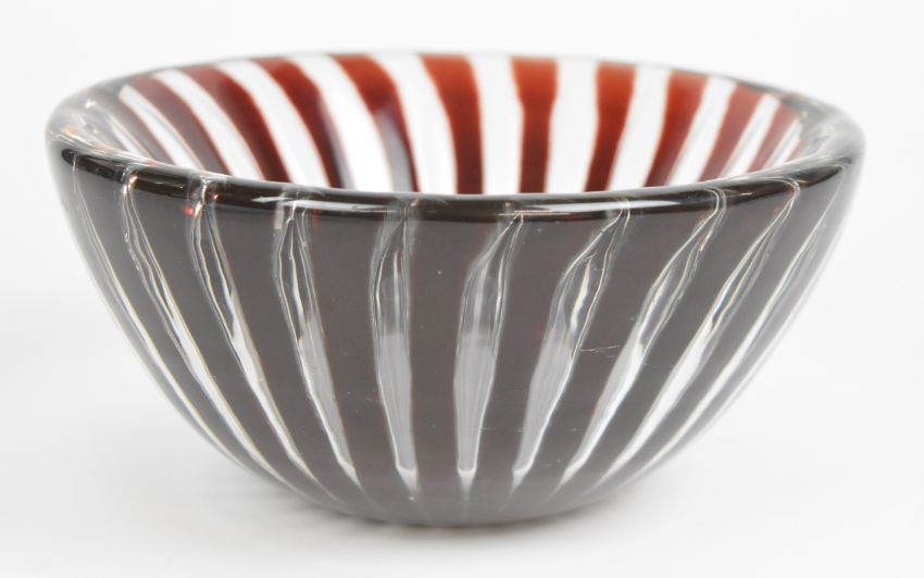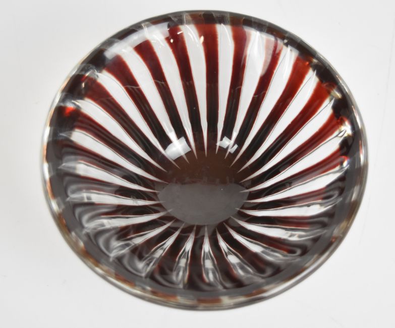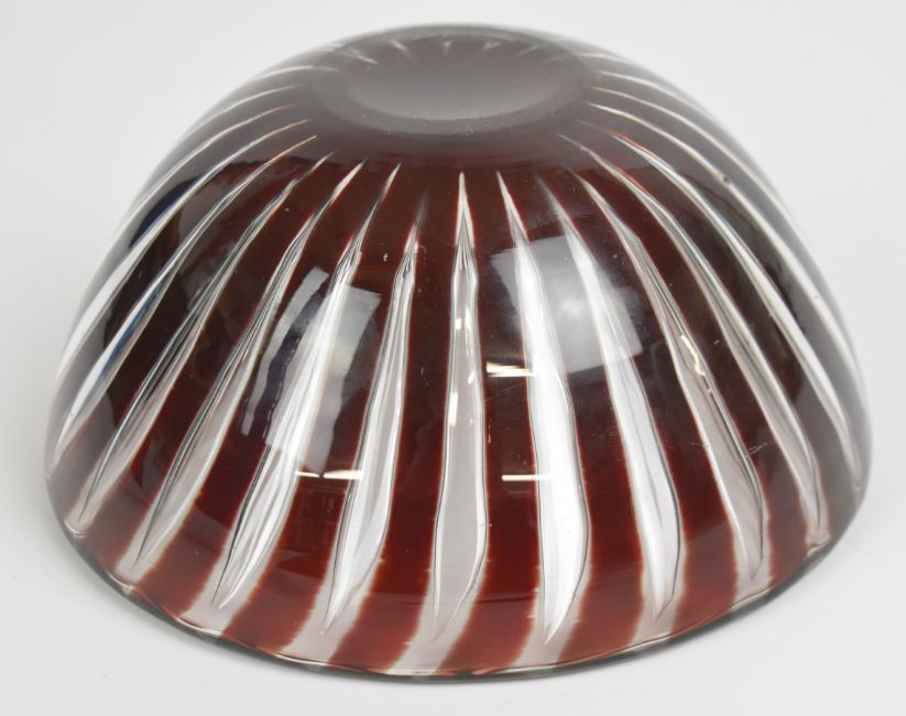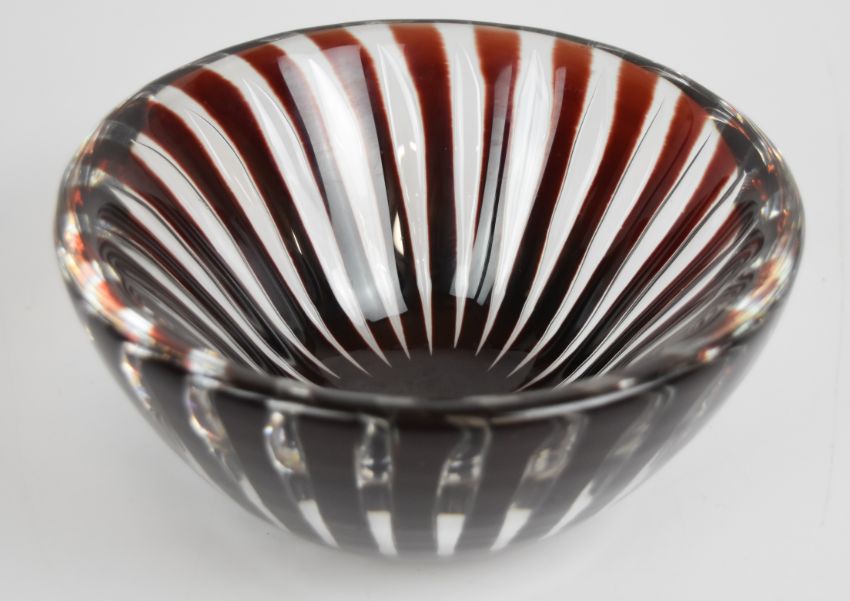 Edwin Ohlstrom for Orrefors Aerial glass bowl with ruby red and clear pulled control bubble decoration, signed and numbered 1712E to base, diameter 18cm