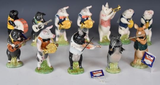 Twelve Beswick Pig Promenade band figures including three limited editions, made for Sinclairs, tallest 14cm, all boxed