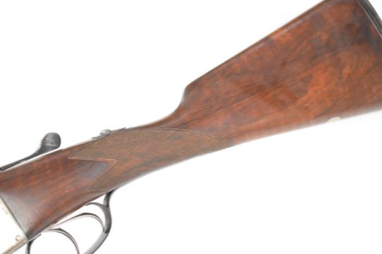 C S Rosson & Co 10 bore side by side shotgun with named locks, border engraved top plate, thumb lever, underside, fences and trigger guard, chequered grip and forend, double trigger and named 28 inch barrels choked ½, overall length 114.5cm, length of pull 37.5cm, serial number 3199. PLEASE NOTE THAT A VALID RELEVANT SHOTGUN CERTIFICATE IS REQUIRED TO VIEW OR PURCHASE THIS LOT AND FOR ALL SHOTGUNS OR RIFLES PLEASE ENSURE YOU HAVE THE RELEVANT CERTIFICATE BEFORE BIDDING.