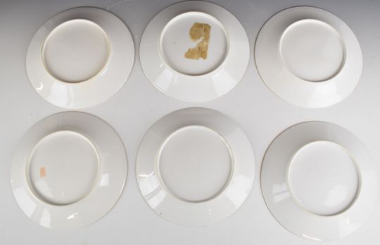Darte Frères À Paris six 19thC gilded dinner plates, probably from a named service, torn paper label with indistinct script verso to one, diameter 24cm