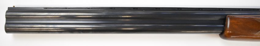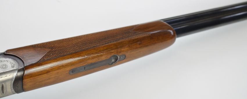 Lincoln 12 bore over and under ejector shotgun with engraved locks, underside, trigger guard, top plate and thumb lever, chequered grip and forend, double trigger, vented top rib and 27.5 inch barrels choked improved cylinder and ¾, overall length 112cm, length of pull 36.5cm, serial number 25880. PLEASE NOTE THAT A VALID RELEVANT SHOTGUN CERTIFICATE IS REQUIRED TO VIEW OR PURCHASE THIS LOT AND FOR ALL SHOTGUNS OR RIFLES PLEASE ENSURE YOU HAVE THE RELEVANT CERTIFICATE BEFORE BIDDING.