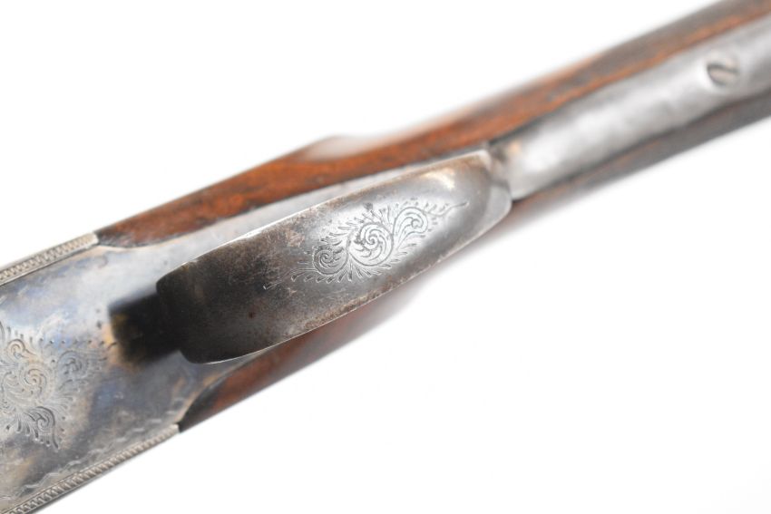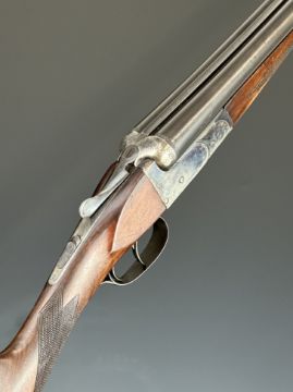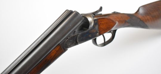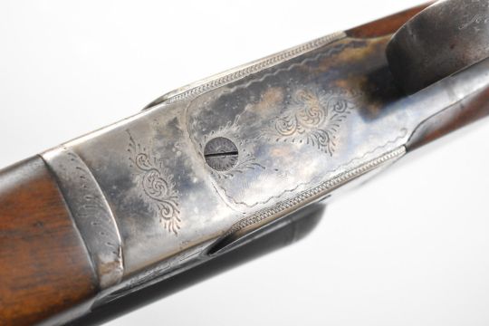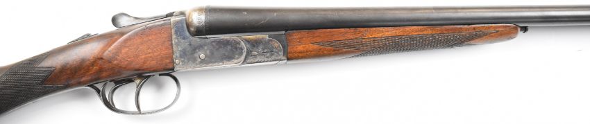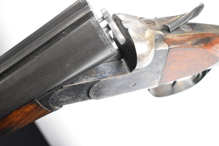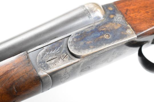 AYA 20 bore side by side shotgun with engraved locks, underside, trigger guard, top plate, thumb lever and fences, chequered grip and forend, double trigger and named 28 inch barrels choked improved cylinder and ½, overall length 113.5cm, length of pull 36.5cm, serial number 132354. PLEASE NOTE THAT A VALID RELEVANT SHOTGUN CERTIFICATE IS REQUIRED TO VIEW OR PURCHASE THIS LOT AND FOR ALL SHOTGUNS OR RIFLES PLEASE ENSURE YOU HAVE THE RELEVANT CERTIFICATE BEFORE BIDDING.