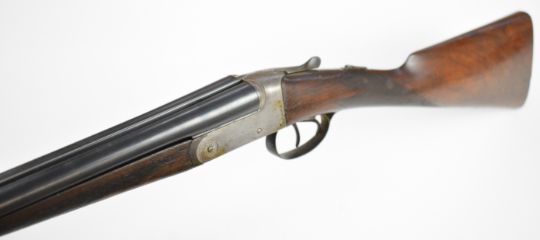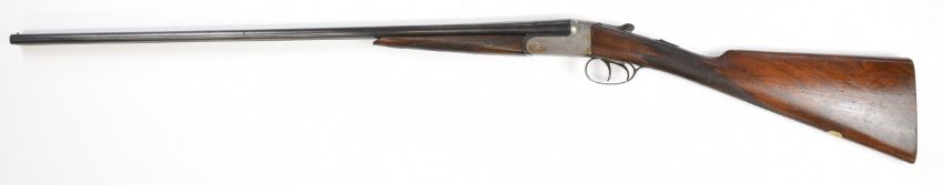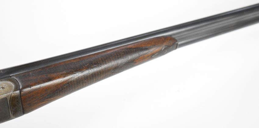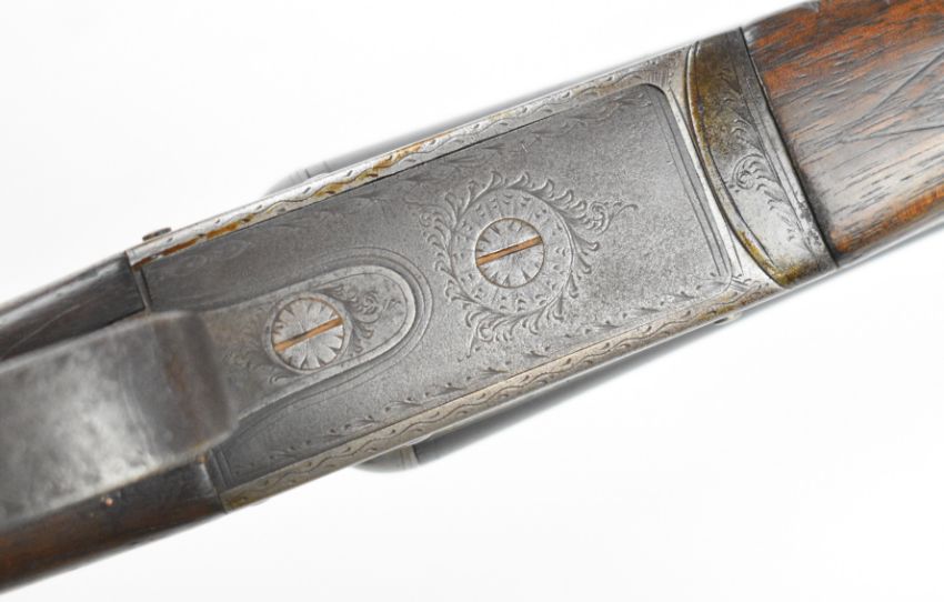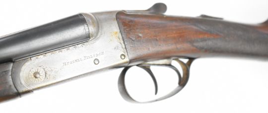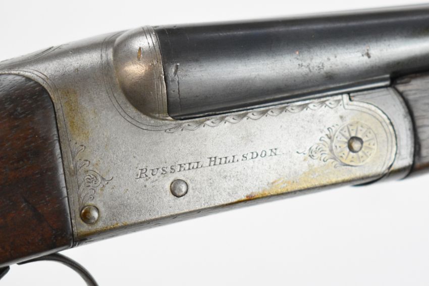 Russell Hillsdon of Chichester .410 side by side shotgun with named and border engraved locks, engraved underside, trigger guard, top plate and thumb lever, chequered grip and forend, vacant cartouche to the underside of the stock, double trigger and 26 inch barrels engraved 'Russell Hillesdon Royal Counties Chichester', overall length 106.5cm, length of pull 35.5cm, serial number 3811. PLEASE NOTE THAT A VALID RELEVANT SHOTGUN CERTIFICATE IS REQUIRED TO VIEW OR PURCHASE THIS LOT AND FOR ALL SHOTGUNS OR RIFLES PLEASE ENSURE YOU HAVE THE RELEVANT CERTIFICATE BEFORE BIDDING.