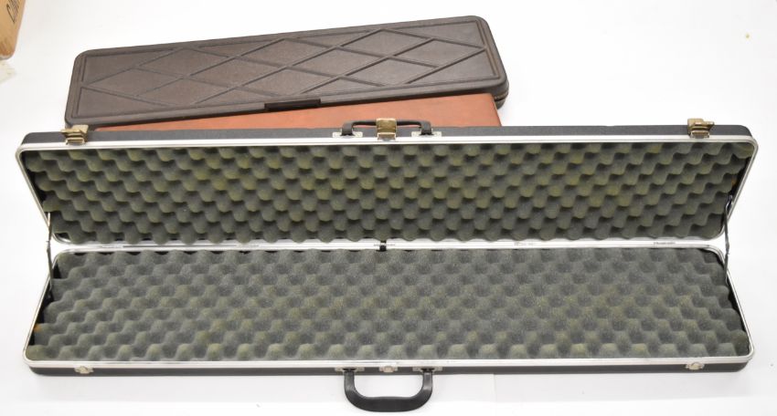 Three shotgun or rifle hard carry cases, all with padded interiors, largest 117cm ling.