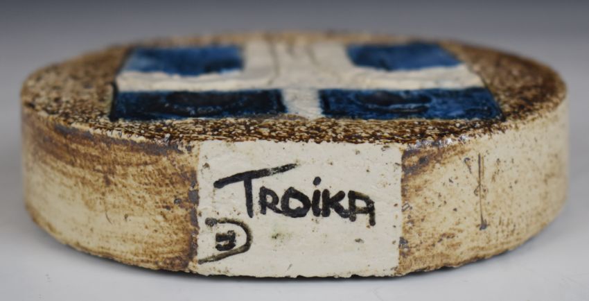 Troika pottery signed wheel vase with monogram to base, probably Tina Doubleday, H12cm