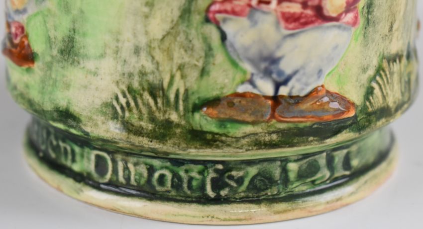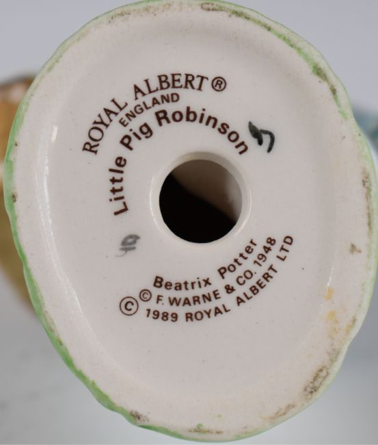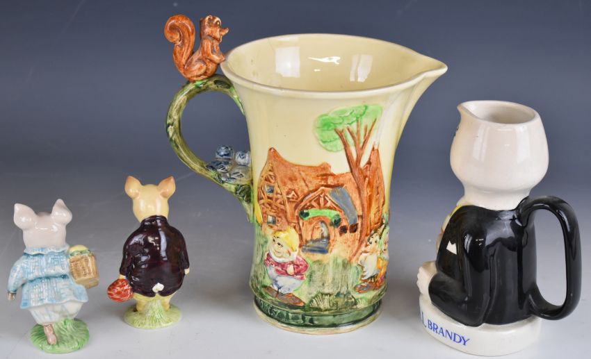 Martell brandy / cognac advertising jug, two Beswick Beatrix Potter figures including Pigling Bland BP2 and a Wadeheath musical jug Snow White and Seven Dwarfs (cracked), tallest 22cm