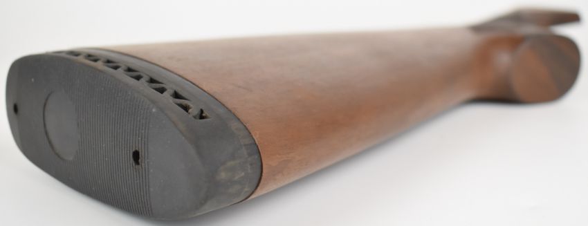 Webley & Scott WS950 Series 12 bore over and under shotgun stock with chequered semi-pistol grip, mounting screws and rubber butt plate, 43.5cm long, with shotgun user manual.