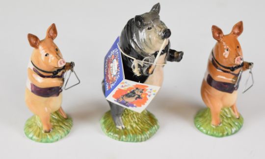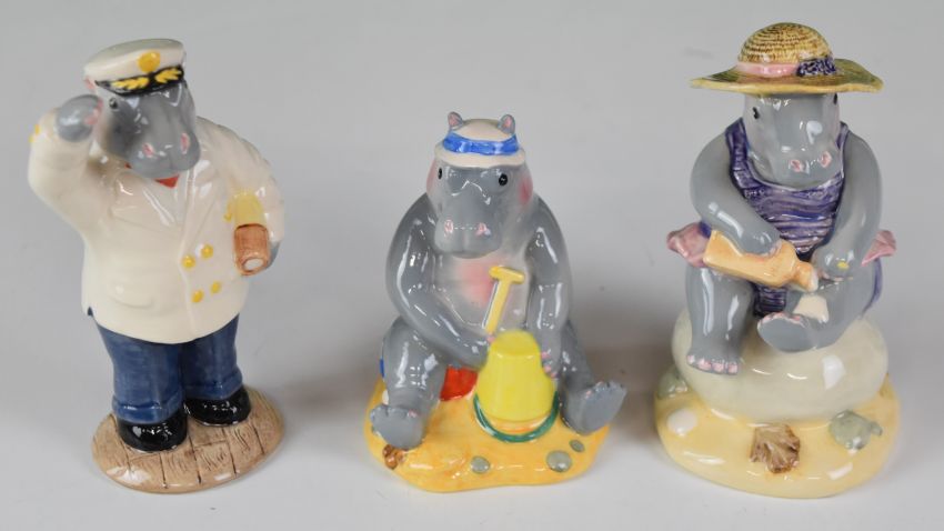 Collection of Beswick Pig Promenade band figures including two James the triangle player and six Hippo Family figures, all boxed, some with certificates
