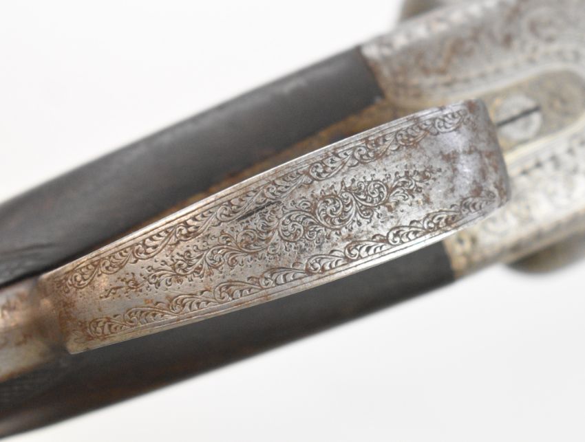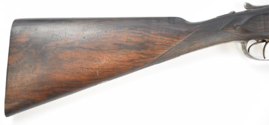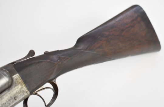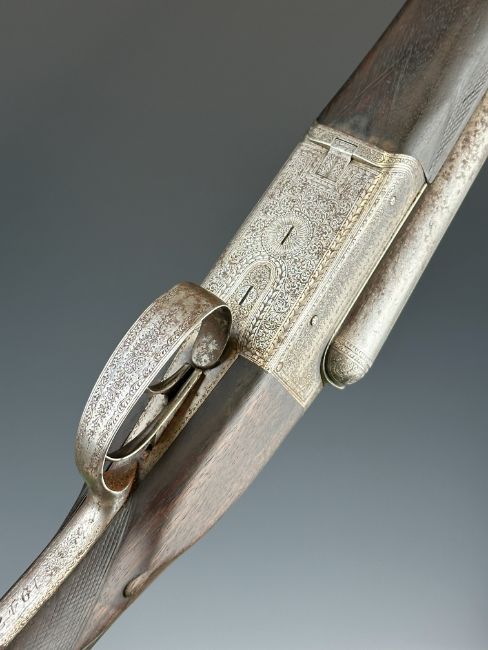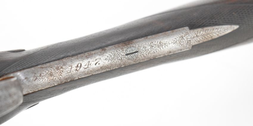 William Mears of Boss & Co St James's London 12 bore side by side shotgun with named and engraved locks, engraved underside, trigger guard, top plate, thumb lever and fences, chequered grip and forend, carved teardrop to the wrist, vacant cartouche to the underside of the stock, double trigger and named 30 inch Damascus barrels choked ¾ and improved cylinder, overall length 117cm, length of pull 36cm, serial number 1947. PLEASE NOTE THIS GUN IS BEING SOLD AS STOCK AND ACTION ONLY AND THAT A VALID RFD CERTIFICATE IS REQUIRED TO HANDLE/PURCHASE THIS ITEM.
