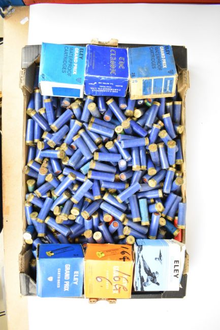 Approximately six hundred and fifty 16 bore shotgun cartridges including Eley No.4 and No.6, some in original boxes. PLEASE NOTE THAT A VALID RELEVANT SHOTGUN CERTIFICATE IS REQUIRED TO VIEW OR PURCHASE THIS LOT AND FOR ALL SHOTGUNS OR RIFLES PLEASE ENSURE YOU HAVE THE RELEVANT CERTIFICATE BEFORE BIDDING. We are not able to offer our usual postage service for this lot