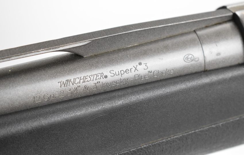 Winchester SX3 12 bore 9-shot semi-automatic shotgun with named lock, textured semi-pistol grip and forend, sling mounts, vented rib and 28 inch multi-choke barrel, overall length 124.5cm, length of pull 37cm, serial number 11HZM12659, in original box with two spare chokes and related paperwork. PLEASE NOTE THAT A VALID RELEVANT FIREARM CERTIFICATE IS REQUIRED TO VIEW OR PURCHASE THIS LOT AND FOR ALL SHOTGUNS OR RIFLES PLEASE ENSURE YOU HAVE THE RELEVANT CERTIFICATE BEFORE BIDDING.