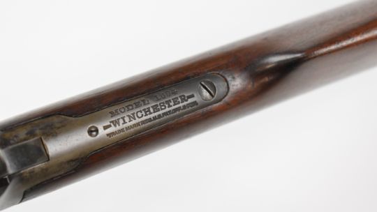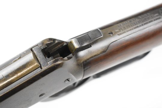 Winchester Model 1894 .32-40 underlever repeating carbine rifle with adjustable sights, steel butt plate and mounts, walnut stock, grip strap stamped 'Model 1894 Winchester Trade Mark Reg US Pat Off & Fgn' and 26 inch barrel stamped 'Manufactured By The Winchester Repeating Arms Co. New Haven, Conn. U.S.A Patented August 21 1894', overall length 113cm, serial number 823440.