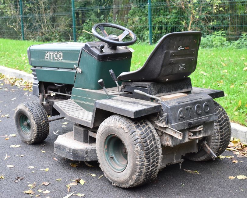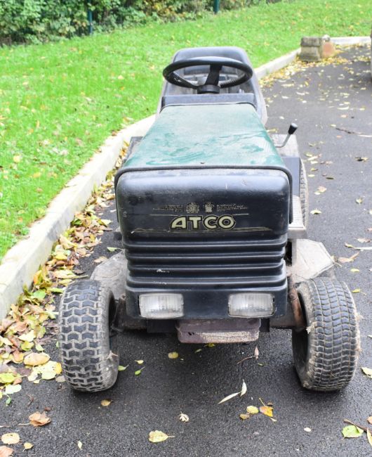 Atco 12 36 electric start ride on mower or garden tractor, with grass collector and powered brush