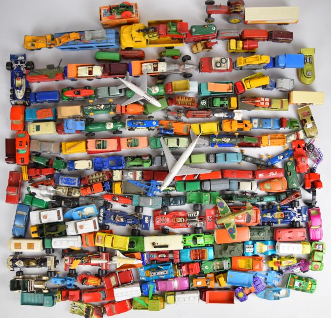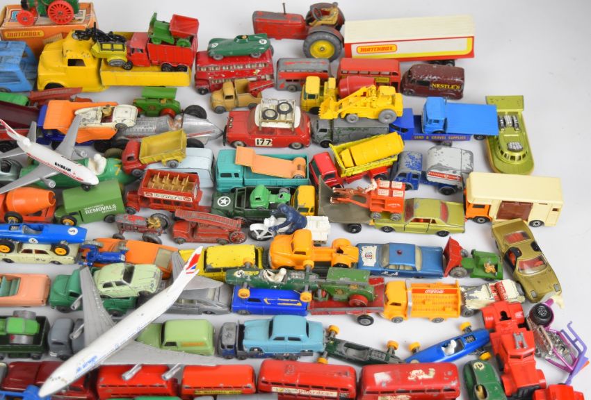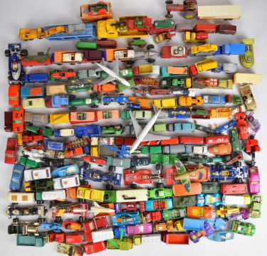 Approximately one hundred and eighty loose Matchbox diecast model cars from various series.