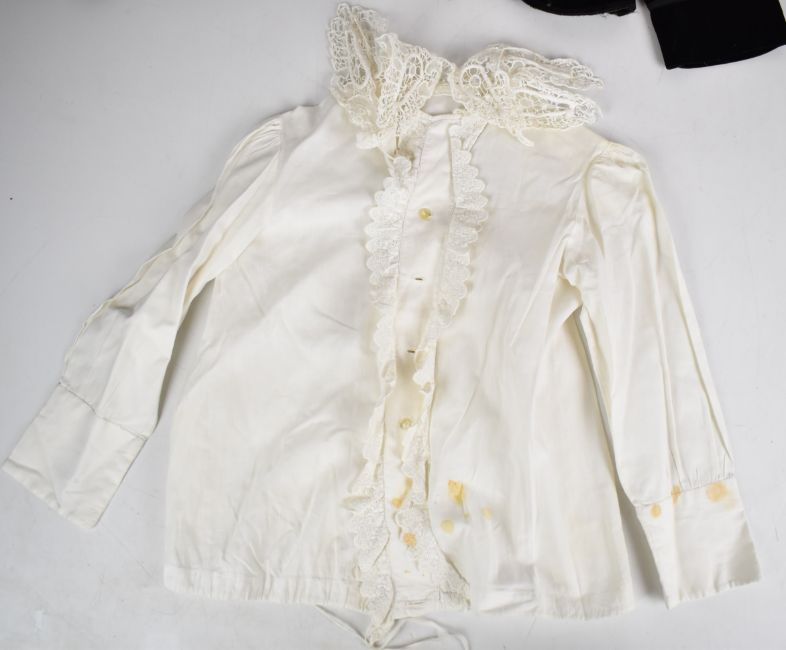 19thC boys black velvet jacket, trousers and lace collared shirt