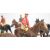 Twelve Britains painted metal racehorses accompanied by nine jockeys in racing colours.