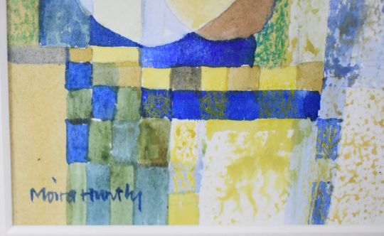 Moira Huntley (born 1932) watercolour still life with spiky plant, signed lower left and with John Blockley label verso, 22.5 x 13.5cm, in gilt frame