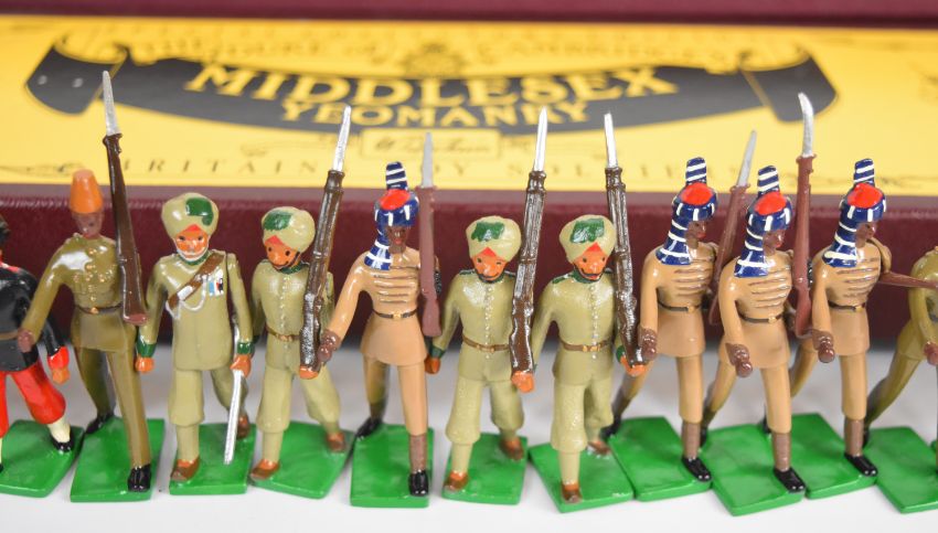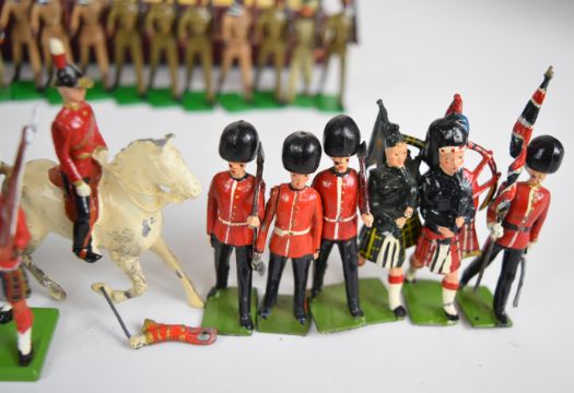 Fifty Britains painted metal toy soldiers to include Scots Guard, Lancers and a Sikh regiment.