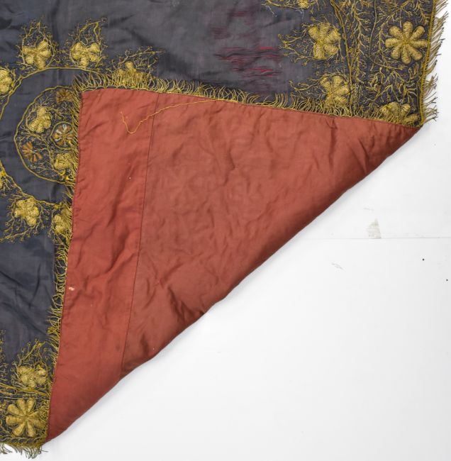 19th / 20thC Chinese silk wirework embroidery panel with floral decoration, 100 x 100cm