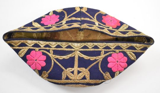 Four Eastern embroidered hats, Chinese, Caucasus etc