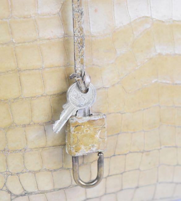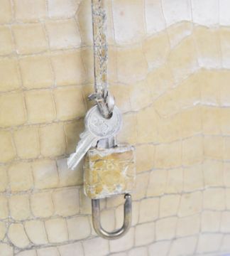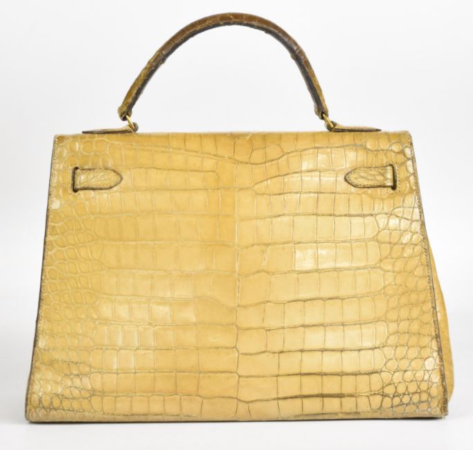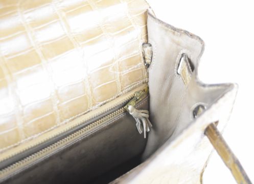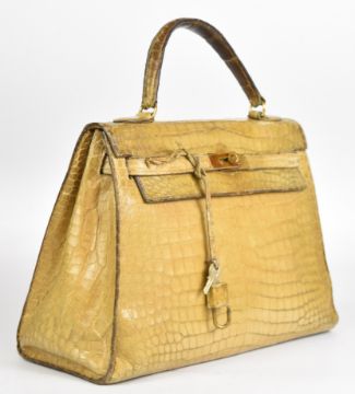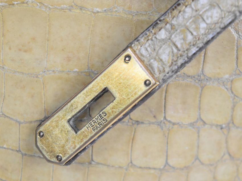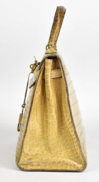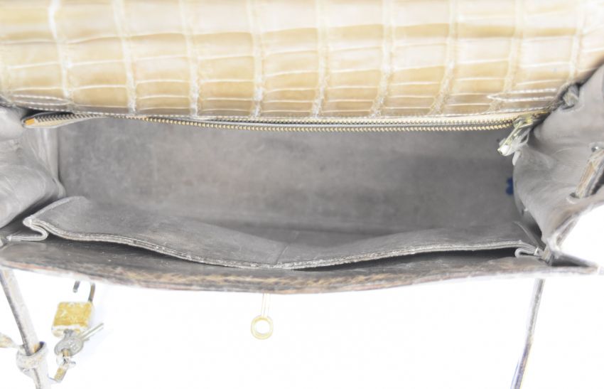 Hermès Paris vintage designer natural crocodile skin 'Kelly' handbag with original padlock, keys and impressed mark, W33 x D13 x H31cm