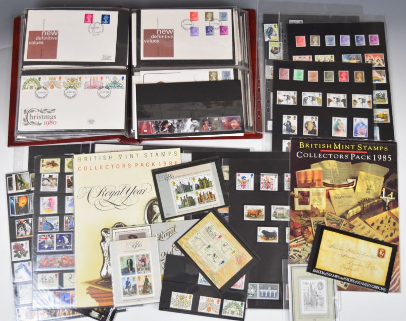 GB collection of mint stamps, four early year packs and an album of first day covers