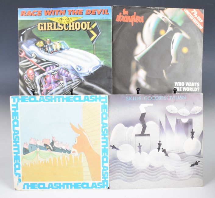 Thirty two Punk / New Wave / Post Punk / Indie 7" singles with rarities to include Dead Kennedys California Uber Alles, The Sound Heyday, The Fall How I Wrote 'Elastic Man', six Skids including Goodbye Civilian and Masquerade (limited edition gatefold double 7"), The Clash English Civil War and London Calling, New Order Ceremony, Young Marble Giants, Cabaret Voltaire, The Ruts, Killing Joke, Delta 5, 999 etc