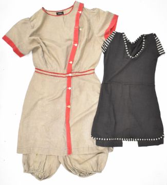 Two Victorian / 1920s swimsuits / bathing costumes, one with red piping