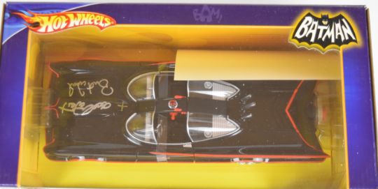 Batman - Adam West and Burt Ward signed Hot Wheels 1:18 scale diecast model 1966 TV Series Batmobile, in original box with certificate of authenticity.