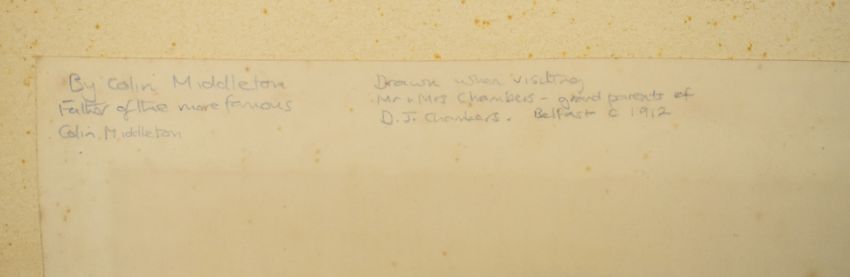 Charles Collins Middleton (1878-1935) charcoal maritime study sailing ship and steam ship on a calm sea at night with lights showing, signed and dated 07 lower left, 59 x 38cm