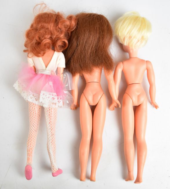 Twelve Pedigree Sindy and Debenhams Sindy clone fashion dolls comprising six of each type, together with a collection of vintage outfits.