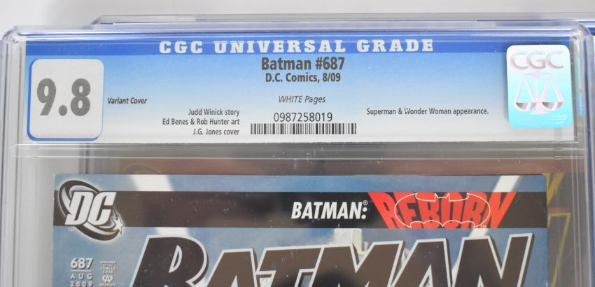 Two Batman issue #687 comics by DC comprising standard and variant covers, both CGC graded 9.8
