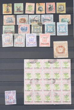 A blue stockbook containing a mint and used collection of Malaya and States stamps including Japanese occupation overprints, various errors including inverted overprints, imperf pairs, block mint and used, ranges from Queen Victoria to Queen Elizabeth II, a useful accumulation