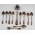 Georgian and later fiddle pattern cutlery comprising table spoon, nine teaspoons and a condiment spoon, length of longest 23cm, weight 245g