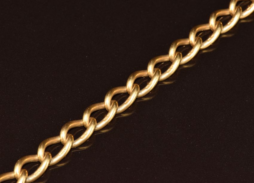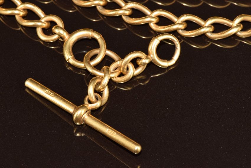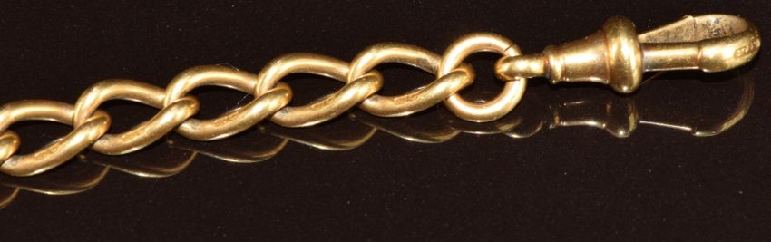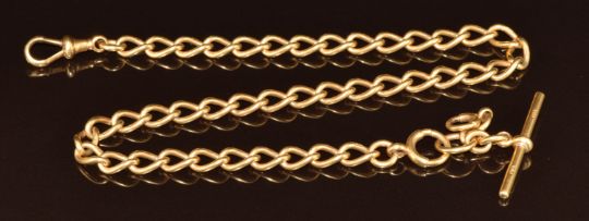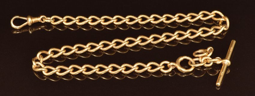 An 18ct gold Albert chain / watch chain, maker M & M, one link marked 1906 Birmingham, 61.6g, 40.5cm